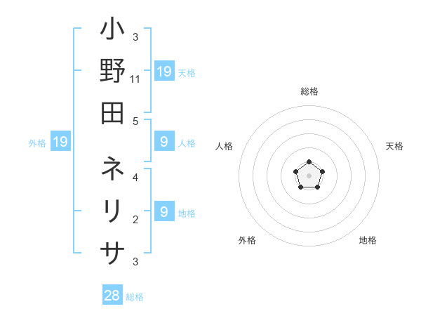 小野田 ネリサさんを姓名の画数から五運を鑑定