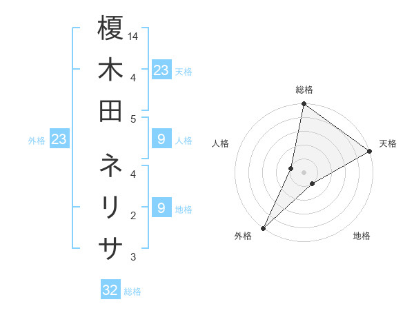 榎木田 ネリサさんの天格は23画の5点!