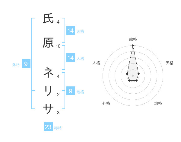 氏原 ネリサさんを姓名の画数から五運を鑑定