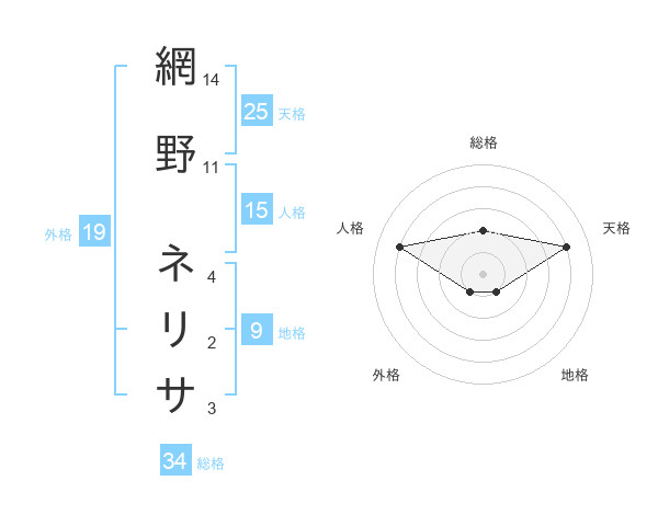 網野 ネリサさんを姓名の画数から五運を鑑定