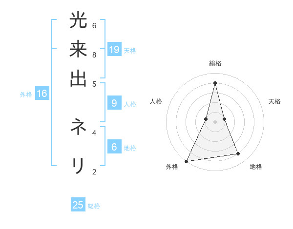 光来出 ネリさんの総格は25画の4点!