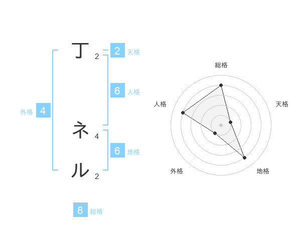 丁 ネルさんの総格は8画の4点!