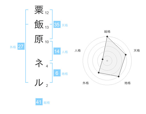 粟飯原 ネルさんを姓名の画数から五運を鑑定
