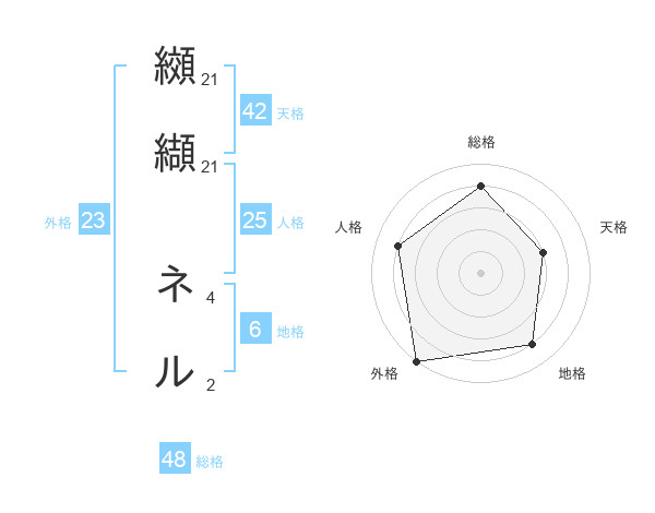 纐纈 ネルさんの総格は48画の4点!