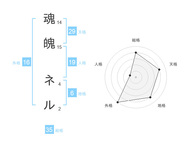 魂魄 ネルさんの総格は35画の4点!