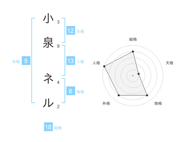 小泉 ネルさんを姓名の画数から五運を鑑定