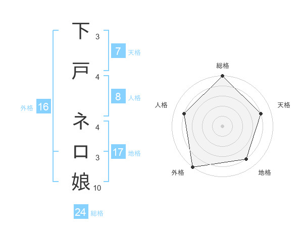 下戸 ネロ娘さんを姓名の画数から五運を鑑定