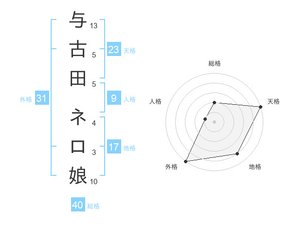 与古田 ネロ娘さんの天格は23画の5点!