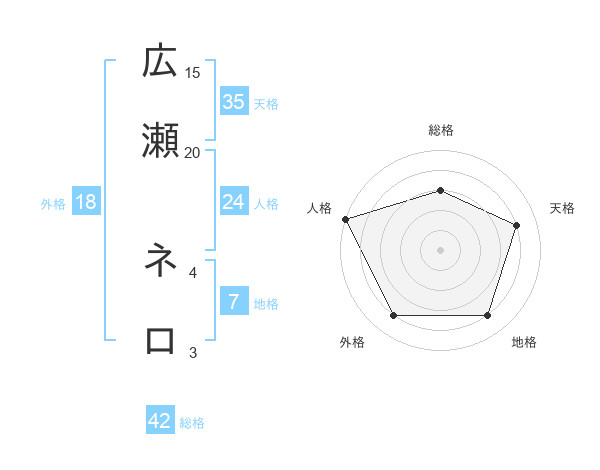 広瀬 ネロさんの天格は35画の4点!