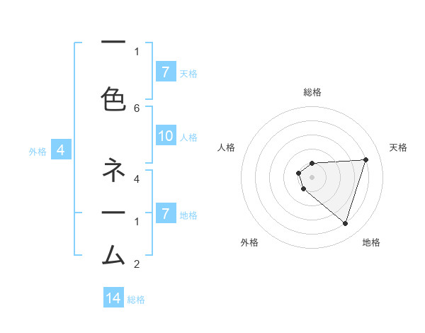 一色 ネームさんの総格は14画の1点!