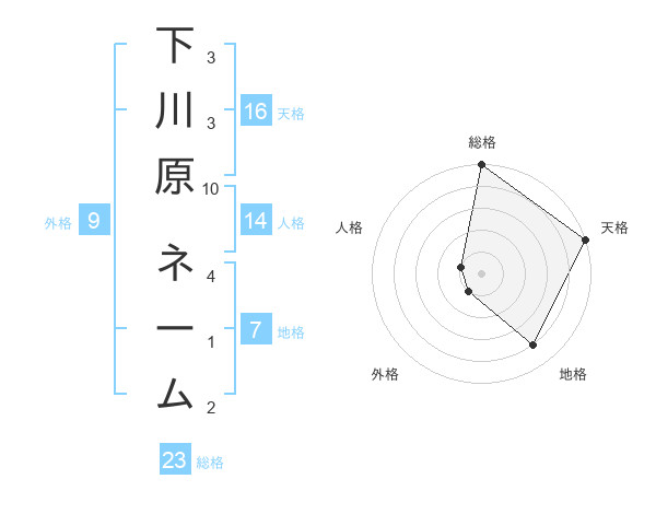 下川原 ネームさんを姓名の画数から五運を鑑定