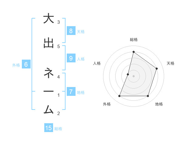 大出 ネームさんの総格は15画の4点!