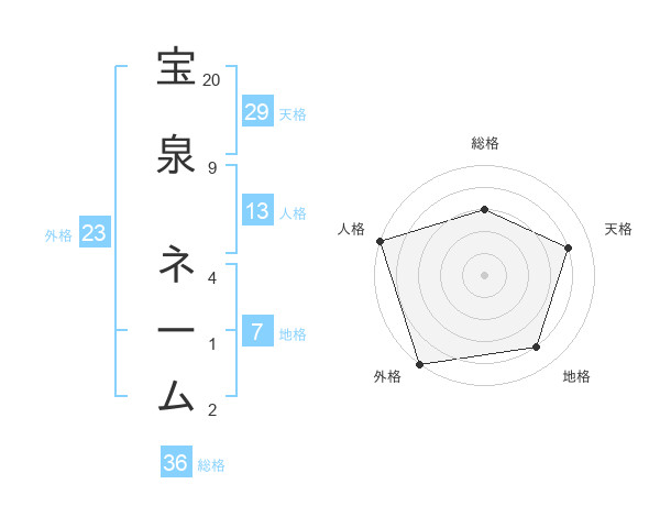 宝泉 ネームさんの天格は29画の4点!