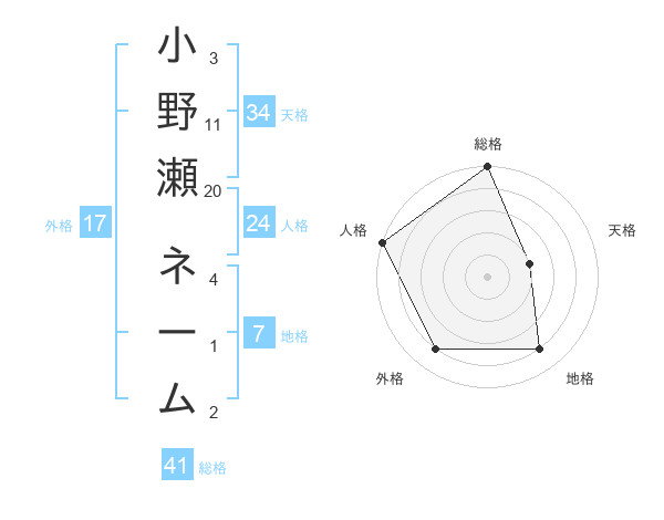 小野瀬 ネームさんを姓名の画数から五運を鑑定
