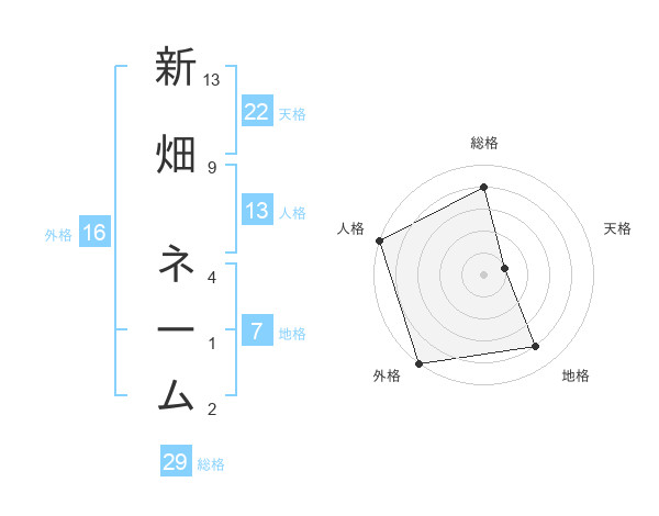 新畑 ネームさんを姓名の画数から五運を鑑定