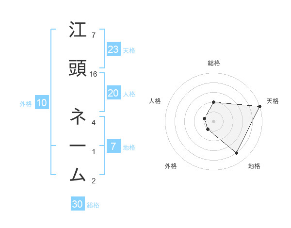 江頭 ネームさんを姓名の画数から五運を鑑定