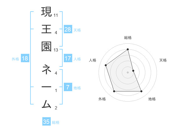 現王園 ネームさんの総格は35画の4点!