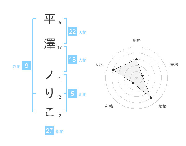 平澤 ノりこさんを姓名の画数から五運を鑑定