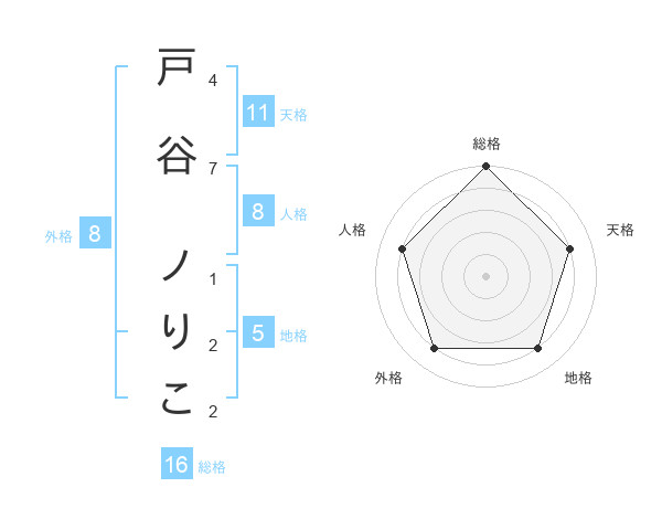 戸谷 ノりこさんの地格は5画の4点!