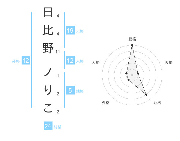 日比野 ノりこさんを姓名の画数から五運を鑑定