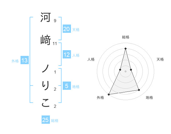 河﨑 ノりこさんを姓名の画数から五運を鑑定