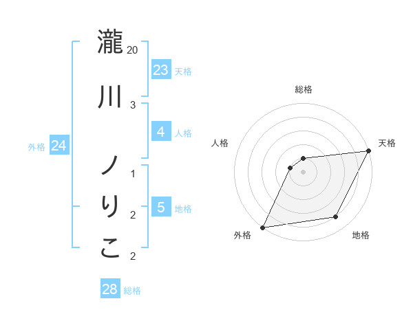 瀧川 ノりこさんの天格は23画の5点!
