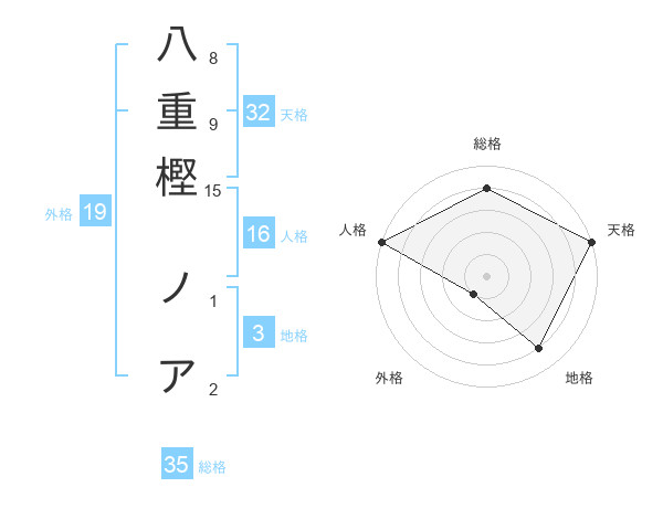 八重樫 ノアさんを姓名の画数から五運を鑑定