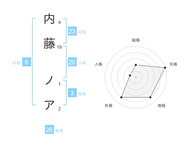 内藤 ノアさんを姓名の画数から五運を鑑定
