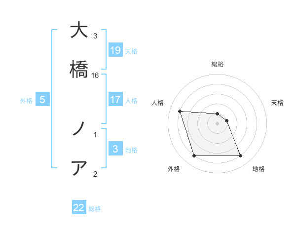 大橋 ノアさんの外格は5画の4点!