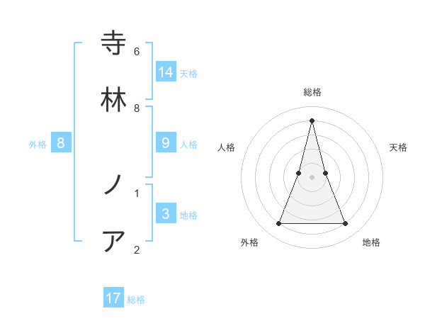 寺林 ノアさんの総格は17画の4点!