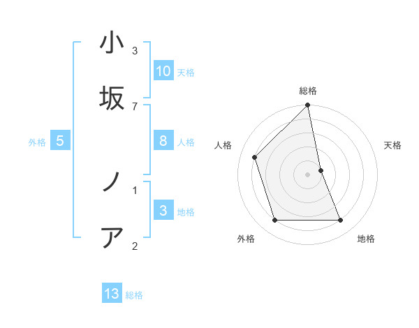小坂 ノアさんを姓名の画数から五運を鑑定