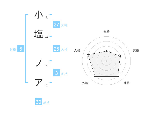 小塩 ノアさんを姓名の画数から五運を鑑定