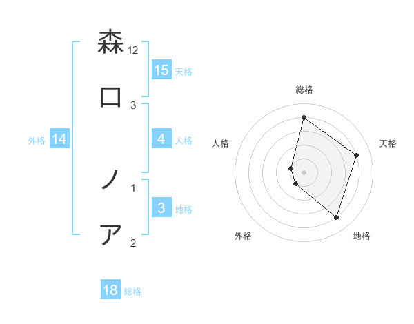森口 ノアさんの総格は18画の4点!