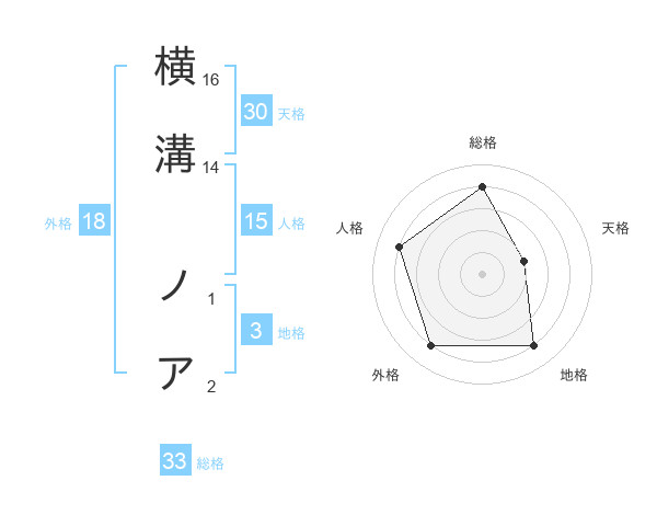 横溝 ノアさんの総格は33画の4点!