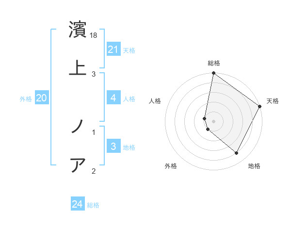 濱上 ノアさんを姓名の画数から五運を鑑定