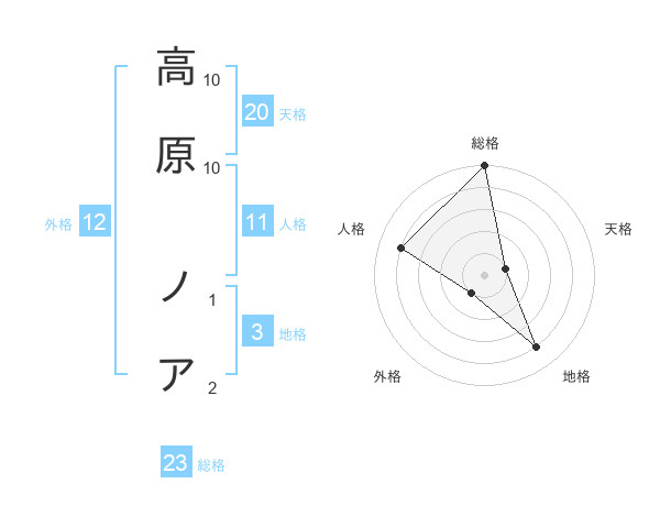 高原 ノアさんの総格は23画の5点!