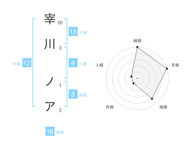 宰川 ノアさんの外格は12画の1点!
