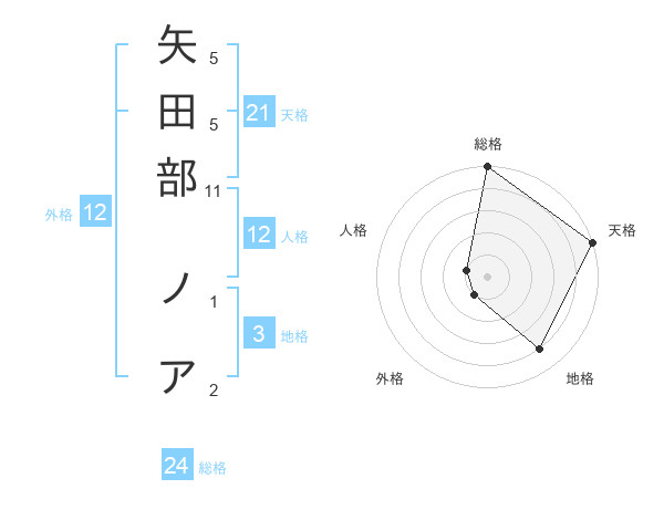 矢田部 ノアさんを姓名の画数から五運を鑑定