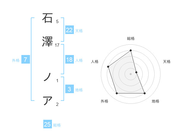 石澤 ノアさんを姓名の画数から五運を鑑定
