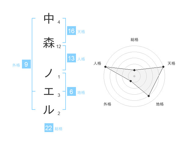 中森 ノエルさんを姓名の画数から五運を鑑定