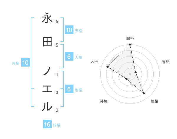 永田 ノエルさんを姓名の画数から五運を鑑定
