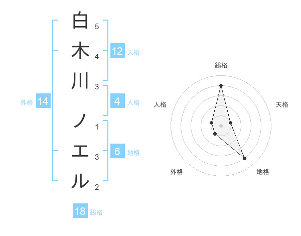 白木川 ノエルさんを姓名の画数から五運を鑑定