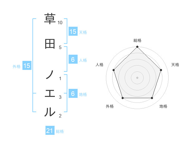 草田 ノエルさんを姓名の画数から五運を鑑定