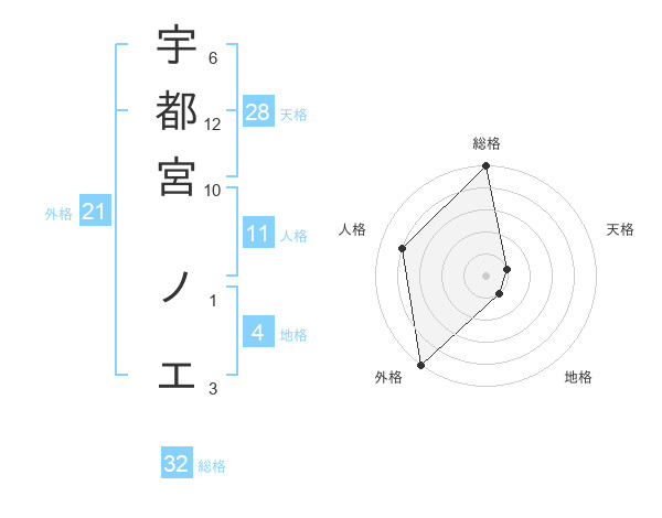 宇都宮 ノエさんを姓名の画数から五運を鑑定