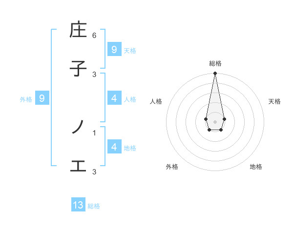 庄子 ノエさんの総格は13画の5点!