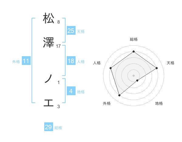 松澤 ノエさんの総格は29画の4点!