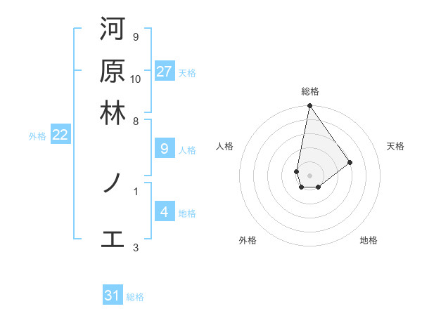 河原林 ノエさんを姓名の画数から五運を鑑定