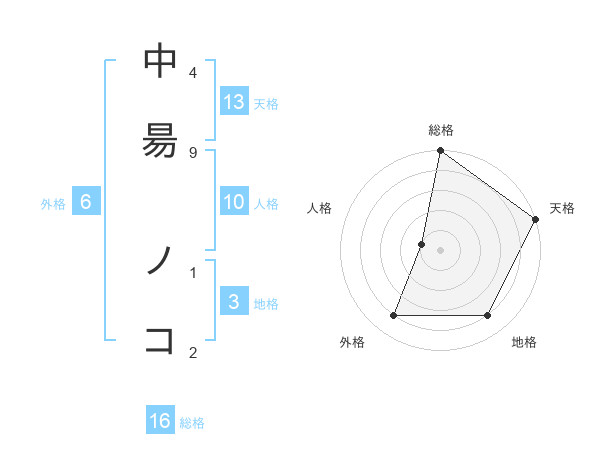 中昜 ノコさんの総格は16画の5点!