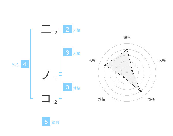 二 ノコさんの総格は5画の4点!