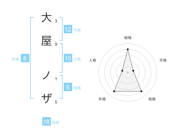 大屋 ノザさんの地格は6画の4点